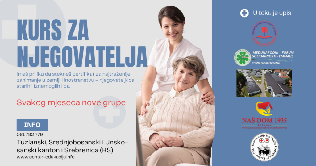U Centru za obrazovanje “Algebra znanja” možeš steći kvalifikaciju za jedno od najperspektivnijih zanimanja današnjice – njega starijih i iznemoglih osoba, traženu kako u Bosni i Hercegovini tako i u inostranstvu.
